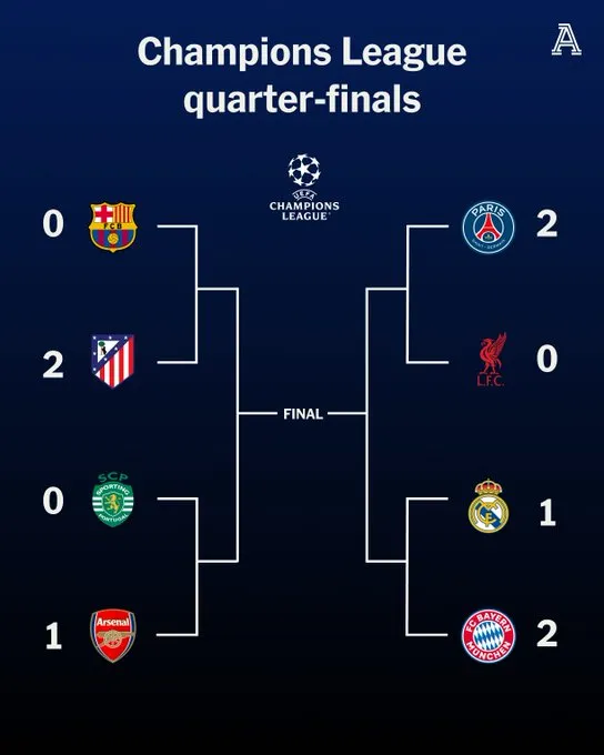 赛事直播入口-欧冠1/4决赛首回合4场比赛主队1胜3负,仅巴黎捍卫主场